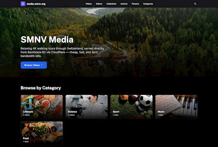 SMNV Media is a new site profile for ProcessWire, created by Maxim Semenov. In a nutshell this site profile is a full-featured media platform for hosting and managing image and video content. It comes with built-in integrations for Backblaze B2 (file storage) and Cloudflare (content delivery).
