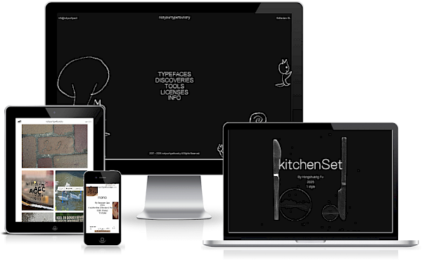 The notyourtypefoundry project was founded back in 2021 as a playground for Xiaoyuan's experimental type design projects, and it is a one-person operation, based in Rotterdam in the Netherlands. You can find a collection of interesting and creative (commercially licensed) fonts from their website, and also contact Xiaoyuan if you're interested in custom type design service, workshops, or contracting a graphic designer.